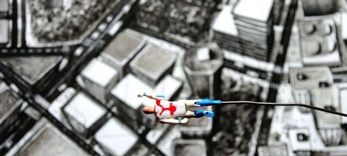 Deux silhouettes parcourent le monde, traversant des univers oniriques.